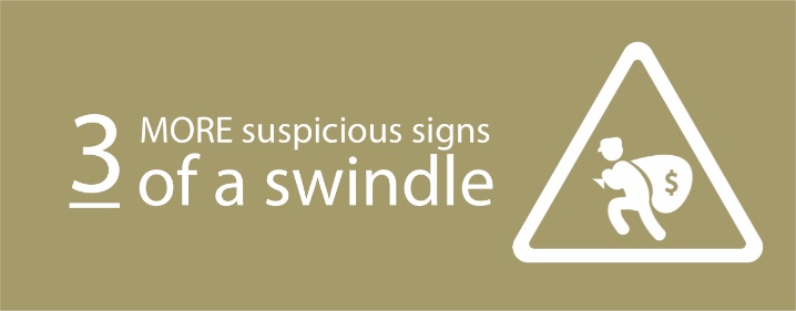 Continue readingTHREE MORE SUSPICIOUS SIGNS OF A SWINDLE
